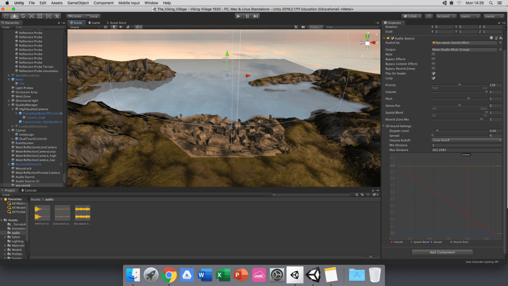 regarding the dimensions for example, as well as positioning, direction and distance – it is an interesting way of mixing sound because of the directional element, the mix of something will sound different at the end and start of a road, it’s cool to sound edit on an interactive rather than linear timeline